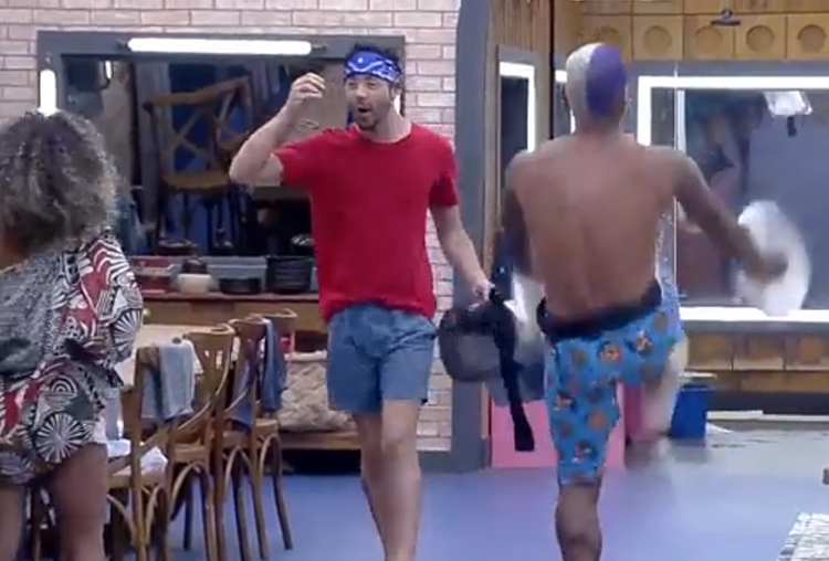 No entanto, Rico não ficou calado e disparou poucas e boas para os artistas. “Acorda!”, disse Sthe. “Tá fumando gata! Tá fumando cigarro? Quer ganhar um milhão e meio só fumando?”, disparou Rico. “Fala, fala, quero!”, rebateu Sthe. “Aqui não gata!”, respondeu o influenciador. “E tu quer ganhar um milhão e meio, dormindo e reclamando?”, disse ela batendo as panelas.