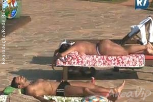 A dupla dá um show de beleza. Piu-Piu resolveu aderir ao topless e tirou a parte de cima do biquíni, para tomar sol nas costas.