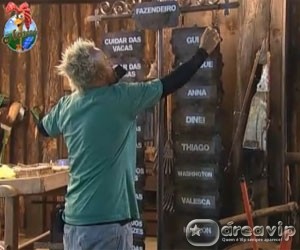 Os confinados discutiram um pouco a respeito das suas funções. Thiago, que ficaria encarregado da vaca, e Raquel, responsável pelo lixo, reclamaram de suas atribuições. Depois de um pouco de conversa, tudo foi resolvido.