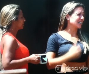 A peoa caminhou até a área externa e, sentada no chão, derrubou algumas lágrimas. Minutos depois, Valesca Popozuda apareceu para dar apoio e abraçou a amiga.