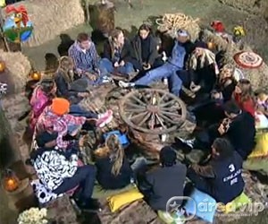 Os confinados estão sentados em círculo e giram uma roda. Quem pergunta gira a roda e responde quem for apontado pela seta.