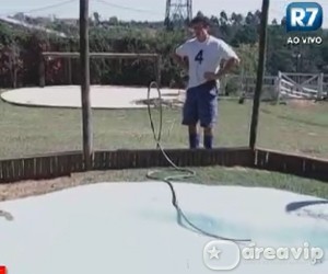 Então, Felipe enrola a mangueira rapidamente, mas não consegue evitar a punição dentro do confinamento.