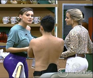 Andressa Urach ouviu Yudi Tamashiro, Mateus Verdelho e Aryane Steinkopf comentando na piscina que Bárbara Evans comeu todo o cereal e contou para a modelo.