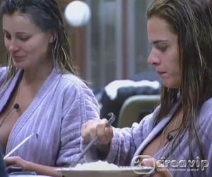 As peoas se estranharam durante o almoço, enquanto ainda se serviam. Em conversa paralela com Yani, a vice-miss Bumbum insinou que alguns famosos que ela conhece não são “bem dotados”.