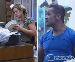 Sentado à mesa, Marcos Oliver flagrou Denise Rocha devolvendo para a panela a sobra de comida do seu prato. O finalista tentou se conter, mas não aguentou e repreendeu a peoa.