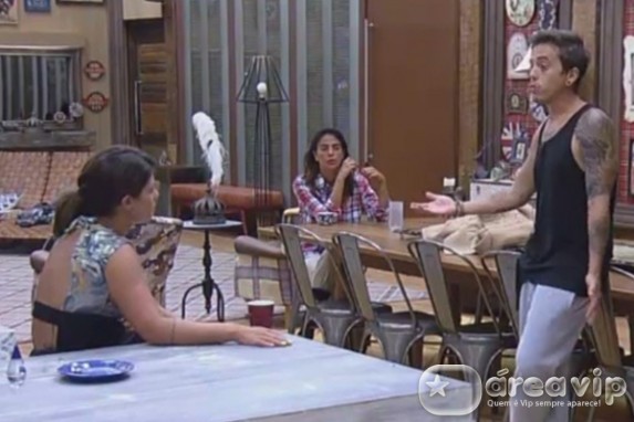 Na cozinha da sede, DH conversou com Babi e Heloisa sobre as próximas Roças e afirmou que prefere votar em membros de seu grupo antes de indicar as peoas da Equipe Coelho.