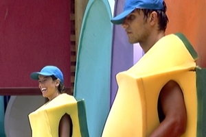 Eliéser e Fernanda são os únicos brothers que restam na disputa pela liderança. Os participantes tiveram que vestir uma fantasia de esponja de lavar louça e se posicionar na frente de pratos gigantes.