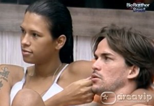 Ariadna faz carinho em Rodrigo