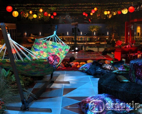 O clima tropical invade o jardim da casa para dar o tom da segunda festa do Big Brother Brasil 11. Denominada Caliente, a festa tem redes, almofadas, mesas de madeira, iluminação com lanternas e muitas flores na decoração.
