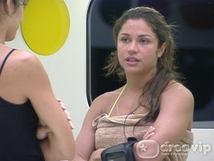 Quando o brother sai, ela continua contando sobre o papo com os novos brothers da casa: “Hoje de manhã estava conversando com ela (Adriana) e ela falou que dormiu na mesma cama que o Gago. Ela falou que o namorado dela deve ter visto e não deve ter gostado. Aí perguntou o que eu achava”, relata Maria. Ela continua contando que respondeu que não acha nada demais porque eles têm mesmo que dividir camas dentro da casa.