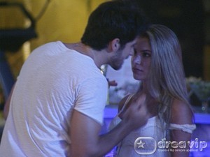 Em seguida, os dois sentam no sofá e Diogo propõe uma brincadeira. Ele pede que Adriana dê beijos no rosto do modelo. Rodrigão pede que a sister o beije na boca. “para de ficar botando pilha vocês”, grita Adriana para Diogo e Wesley.