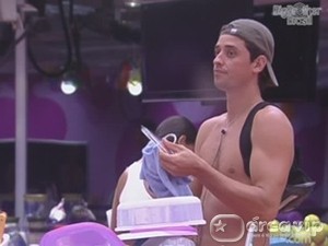 Na cozinha, Fael faz brincadeira pelo fato de Jonas já ter ficado com Monique e Renata na casa. “Quem está com essa moral toda é o belezura”, diz Fael, referindo-se a Jonas.