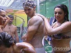 No Quarto Praia, Jonas, Monique, Kelly e Fabiana tomam banho juntos. A gaúcha pega uma esponja e se diverte em ensaboar as costas de Jonas. Yuri olha de longe e brinca: “Fiscal do banho!”, diz o goiano. “Quero ver se vai burlar as regras!”, diz Monique. “Trinta segundos! Valendo!”, avisa Yuri. Jonas aproveita e também ensaboa Monique. Ele pega a esponja e passa no bumbum da sister. Os brothers caem na gargalhada.