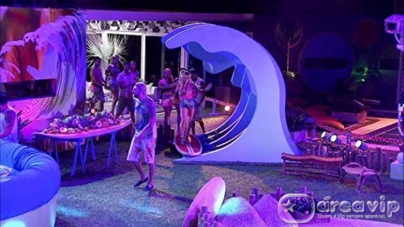 A noitada também teve banho de piscina de Cássio, Diego e Marcelo; clima quente no Quarto Festa, protagonizado por Diego e Franciele; e pedido de beijo triplo de Marcelo a Clara e Vanessa.