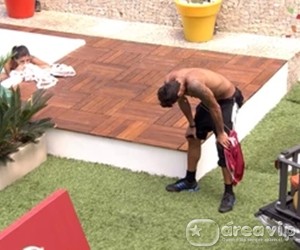 Diego desiste e é o oitavo brother a deixar a Prova do Líder “Fiat Strada’. O publicitário sai de cima do toco e coloca as mãos nos joelhos.