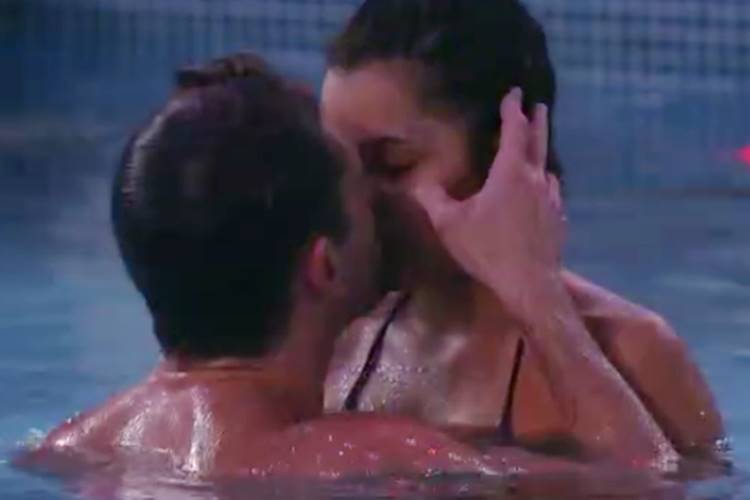 Pensa que acabou? Nada disso! Como já é de praxe, depois da tensão pré-paredão os brothers são presenteados com drinks. Marcos e Emilly beberam juntos, dançaram agarradinhos e foram dar um pulo na piscina, sozinhos. Momento ideal para mais um beijinho.