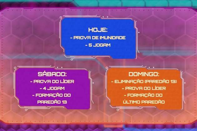 Domingo – Eliminação – Prova Final – Formação de um novo Paredão.