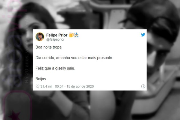 Por falar no ex-BBB, a Globo optou por tratar o nome do eliminado como uma grande proibição nas atrações da casa e obviamente, nos bastidores. Nas redes sociais do reality, sequer o nome do paulista é mencionado para a fuga de maiores polêmicas, e segundo informações do jornalista Leo Dias, a Platinada ‘lavou as mãos’ sobre Felipe Prior, e que o liberou de maneira oficial a conceder entrevistas.