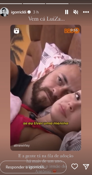 Nas plataformas digitais, o ator Igor Rickli fez questão de comentar o assunto. Através de seu perfil do Instagram na ferramenta dos Stories, ele repostou o vídeo em que a amada fala sobre o assunto.