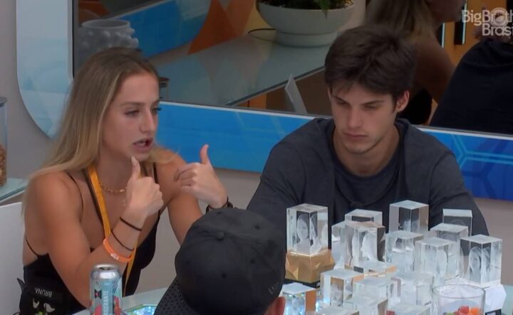 Dessa forma, de início, durante um bate-papo com Fred, Gabriel e MC Guimê, Bruna Griphao explica o papo que teve com Key Alves na piscina: “Óbvio que eu não cheguei, tipo assim: ‘Aí você vota em mim? Me explica aí'”, revela ela, para seus aliados.