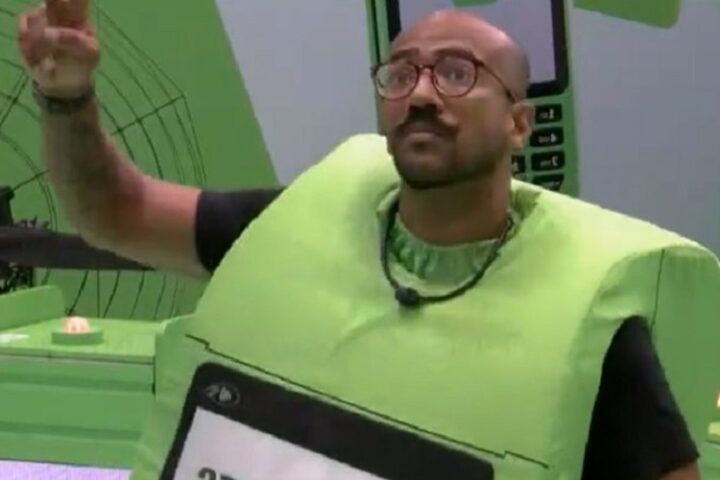 Para quem não sabe, a dinâmica consiste nos competidores trajando roupa especial que simula maquininha de cartão do patrocinador. Os brothers ficam de pé em cima da plataforma giratória, devendo permanecer ininterruptamente com uma das mãos apoiadas sobre um botão posto no alto de um totem. Para descansarem, Fred Nicácio e Bruna Griphao apoiaram todo o corpo na estrutura, despertando o sentimento de trapaça em Ricardo Alface.