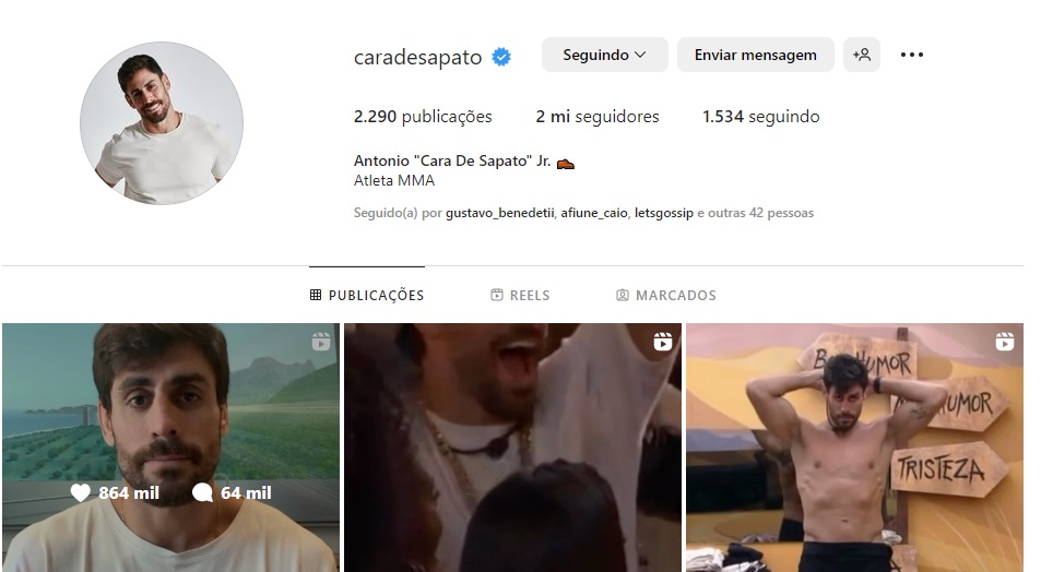 Cara de Sapato, sem dúvidas, foi um dos nomes mais comentados dos últimos dias na web. Afinal, o mesmo acabou sendo expulso do BBB23 após ser acusado de assediar Dania Mendez. Apesar da polêmica, o lutador, ao que tudo indica, vem fazendo um grande sucesso no Instagram.