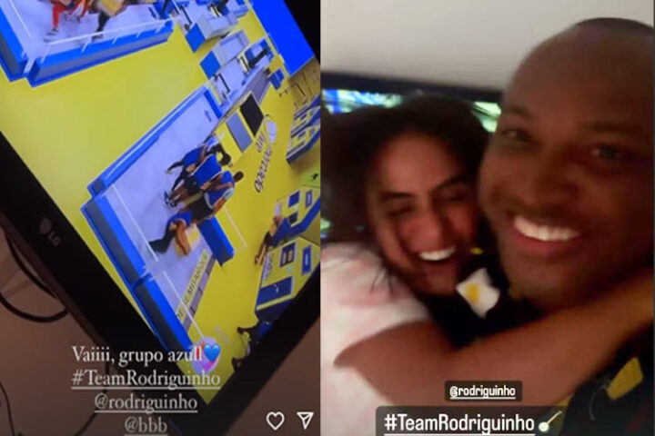O pagodeiro compartilhou a felicidade com o público ao saber do resultado, comemorando a vitória do brother. No vídeo, ele aparece abraçado com a namorada Carol Peixinho e aproveita para pular muito após o anúncio da vitória de Rodriguinho por Tadeu Schmidt. “Preto show, preto show”, disse Thiaguinho.