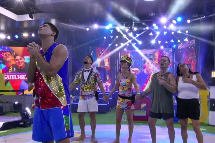 Na noite de quarta-feira (19), aconteceu a Festa do Líder Guilherme. Com direito a fitas típicas, estandarte personalizado e bonecão, o “Bloco do Guilherme”, animou os brothers no BBB25.
