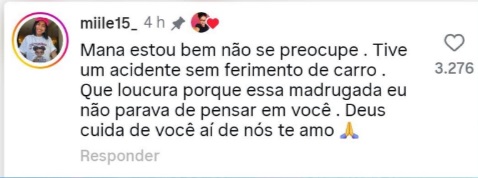 Horas após o relato, a irmã da sister utilizou suas redes sociais para contar que sofreu um acidente de carro no mesmo dia, mas que passava bem, em uma coincidência que surpreendeu os fãs do reality.