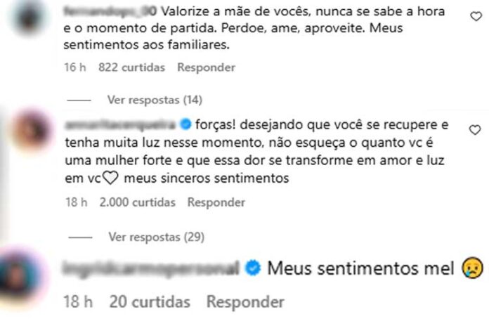 “Tia, com essa dor que aperta o peito, despeço-me de você por enquanto. Eu te amo muito! Espero, de coração, que você encontre a sua felicidade e a sua paz nesse novo local. Prometo guardar para sempre cada risada, cada conselho e cada pedacinho desses momentos inesquecíveis que construímos juntos”, finalizou o primo da Mel Maia.
