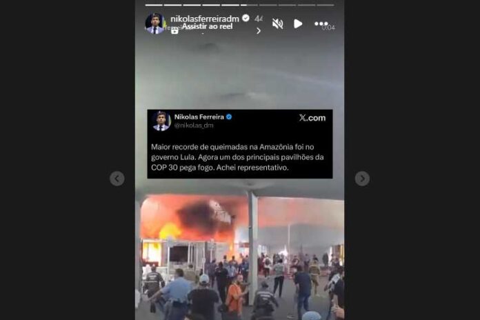 Nikolas Ferreira usou o seu perfil no Instagram para falar sobre o incêndio que atingiu um pavilhão na COP30, em Belém (PA). O deputado federal citou ainda os incêndios na Amazônia…Saiba mais!
