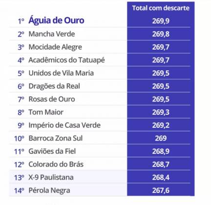 A equipe da Águia de Ouro comemora um momento único nesta terça-feira (25). A escola saiu campeã, pela primeira vez, do Carnaval de São Paulo.