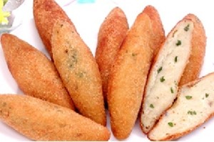– Em um recipiente coloque as batatas cozidas e passadas pelo espremedor, o bacalhau cozido e desfiado, a salsinha, a cebolinha e o ovo levemente batido.