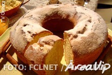 Coloque em forma redonda de buraco no centro, untada e polvilhada. Leve ao forno pré-aquecido (180ºC) por 35 minutos. Retire do forno e polvilhe açúcar.