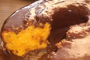 Na vasilha da batedeira, coloque o açúcar, as gemas e o óleo. Misture os ingredientes e bata. Junte o leite, as raspas de limão (opcional), a farinha de trigo, o fubá e o fermento (peneirados). Bata, acrescente as claras em neve e misture delicadamente. Coloque em forma redonda, untada e polvilhada. Pré-aqueça o forno a 150º C e asse por 30 minutos, na temperatura 180º C. Retire o bolo da forma e regue com caldo de chocolate.