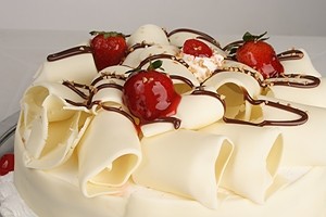– Decore com raspas de chocolate branco e cerejas