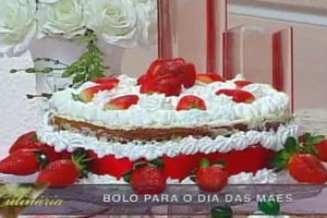 – Sobreponha a 3ª parte retirada do bolo. Decore com chantilly e morangos. Retire da forma e acomode em um prato para o bolo. Leve para gelar por 15 minutos.