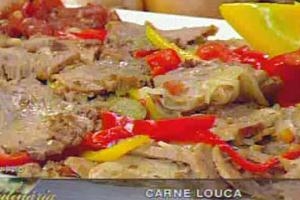 – Em uma panela coloque um fio de azeite e refogue as cebolas. Junte os pimentões, sal e a pimenta. Cozinhe por alguns minutos. Acrescente o caldo do cozimento da carne. Cozinhe mais um pouco. Desligue e adicione as azeitonas.