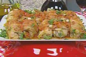 – Em um recipiente coloque a carne moída, os tomates, cebola, arroz cru, cebolinha, salsinha, sal e pimenta. Mexa a cada ingrediente adicionado. Recheie as folhas de repolho e feche-as bem. Aqueça o azeite em uma panela e coloque os charutinhos. Cozinhe por cerca de 5 minutos. Acrescente o molho de tomate. Continue cozinhando até que o arroz fique cozido.