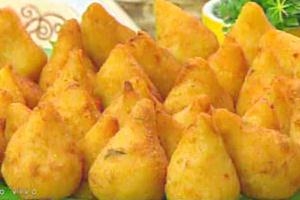 – Em uma panela coloque o caldo do cozimento do frango reservado e deixe ferver. Junte a margarina, queijo ralado, sal e farinha de trigo. Cozinhe até desgrudar da panela (cerca de 4 minutos). A seguir, espalhe a massa com auxílio de uma espátula, sobre a superfície lisa untada com um pouco de óleo. Acrescente a mandioquinha ou batata baroa cozida e espremida. Sove para se agregar. Pegue porções da massa obtida e abra na palma da mão. Empregue o recheio. Modele a coxinha. Passe pelo ovo e farinha. Frite em óleo quente. Escorra.
