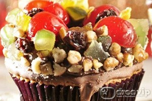 *Quem não gostar de frutas cristalizadas pode usar chocolate. Você pode usar açúcar mascavo para dar uma cor parecida a do panetone na massa. Use cerejas, passas, canela, frutas cristalizadas e damasco para decorar.