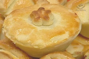 – Distribua um pouco de requeijão e o recheio. Abra a massa e cubra a empada.