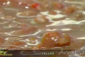 – Deixe o feijão de molho de um dia para o outro. Na panela de pressão coloque a água, o feijão, a folha de louro, a cebola e os pimentões. Deixe ferver. Após pegar presão cozinhe por 15 a 20 minutos.