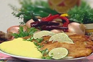 – Em um recipiente coloque os filés de peixe e tempera com sal, pimenta e suco de limão. A seguir passe pelo ovo e a farinha de rosca. Repita a operação.