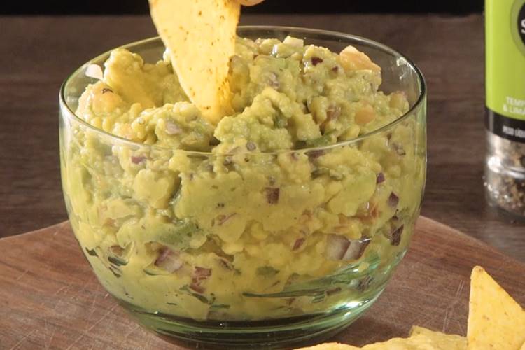 Amasse o abacate e adicione o suco de limão, tempere com Lemon Pepper (SMART). Adicione o tomate, a cebola e misture bem. Coloque folhas de coentro, azeite e sirva com tortilhas de milho.