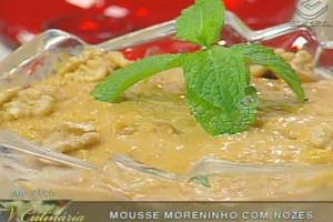 – Na vasilha da batedeira coloque o doce de leite cozido e o creme de leite. Bata para se agregarem. Junte a gelatina hidratada com água e dissolvida em banho maria. Torne a bater. Acregue as nozes picadas e as claras em neve. Leve para geladeira por aproximadamente uma hora, uma hora e meia.