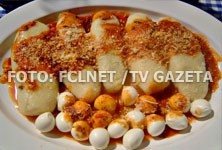 – Coloque em um refratório e regue com o molho de tomate