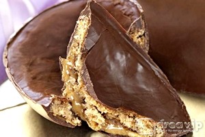 Derreta o chocolate e faça a temperagem conforme instruções do fabricante. Com o auxílio de uma colher, passe uma fina camada de chocolate na fôrma de acetato, leve à geladeira para secar, por cerca de 5 minutos, e repita a operação. Espalhe 2 colheres (sobremesa) de doce de leite dentro de cada casca do ovo de chocolate, deixando livre uma borda de 0,5cm. Cubra com um oval de pão de mel dentro de cada casca, e complete com uma fina camada de chocolate. Leve à geladeira até endurecer e retire apenas quando o fundo das fôrmas ficarem opacos. Desenforme e reserve fora da geladeira, em local fresco e sem umidade.