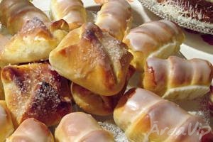 – Em um recipiente coloque o fermento esfarelado e um pouco de açúcar. Misture até obter um líquido. Junte o leite morno. Reserve. Em um recipiente coloque a farinha (reserve um pouco), gema e o ovo levemente batidos, açúcar, manteiga e raspas de limão. Mexa com a colher. Acrescente o fermento reservado. Adicione aos poucos a farinha reservada. A seguir, sove sobre a superfície lisa. Deixe descansar por cerca de 10 minutos. Abra a massa com o auxílio do rolo. Corte em tiras de aproximadamente 2 dedos de largura. Enrole nos canudos de alumínio untados e polvilhados. Acomode em uma assadeira retangular untada e polvilhada. Pincele a gema. Deixe dobrar de volume. Leve ao forno pré aquecido 150ºC por cerca de 15 minutos e 180ºC a 200ºC até dourar. Após assar, retire do canudo. Coloque o creme frio no saco de confeiteiro e recheie os pãezinhos.