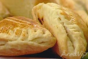 – Em um recipiente coloque a farinha, margarina, sal, creme de leite e fermento em pó. Misture com as mãos. A seguir, sove sobre a superfície enfarinhada. Deixe descansar por cerca de 15 minutos. Abra a massa sobre a superfície enfarinhada com auxílio do rolo. Modele com cortador redondo. Empregue o recheio frio. Feche unindo as extremidades e pressione com a ponta do garfo. Acomode com a assadeira untada e polvilhada. Pincele com a gema. Leve ao forno pré aquecido 180°C por 20 minutos.